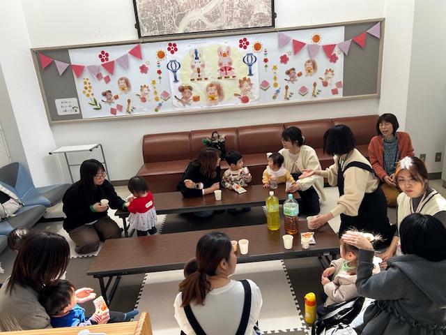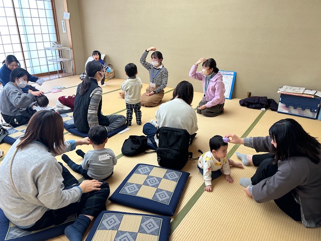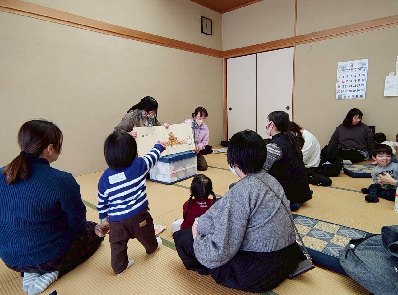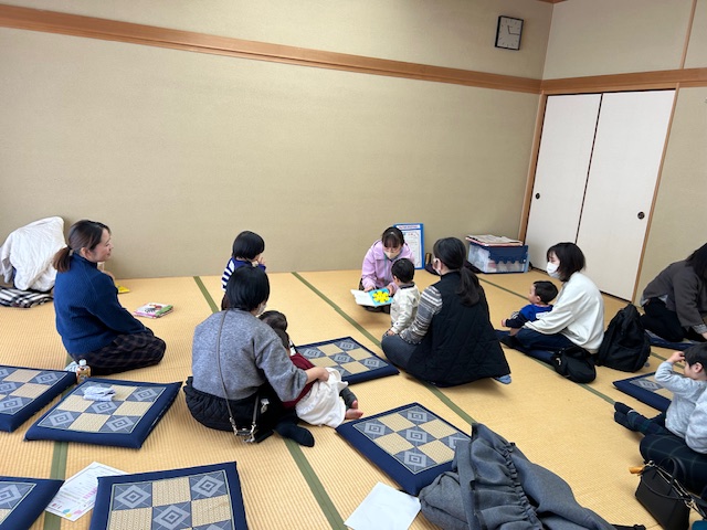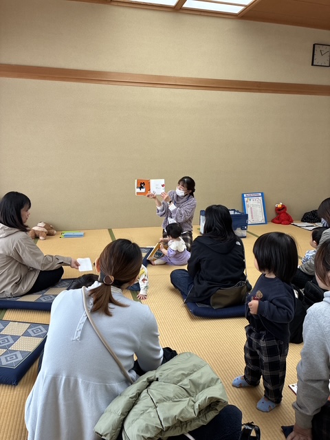 身が引きしまるような寒さの中、新年最初のIPPOを開催しました。年末年始の疲れや、寒さ、感染症の影響を心配していましたが、どの子も寒さに負けず元気な姿を見せてくれました。みんな楽しそうにおはなしや手あそびをしていたり、おかあさんや他のお友達とおしゃべりしたりと、とても賑やかなおはなし会でした。
