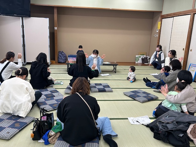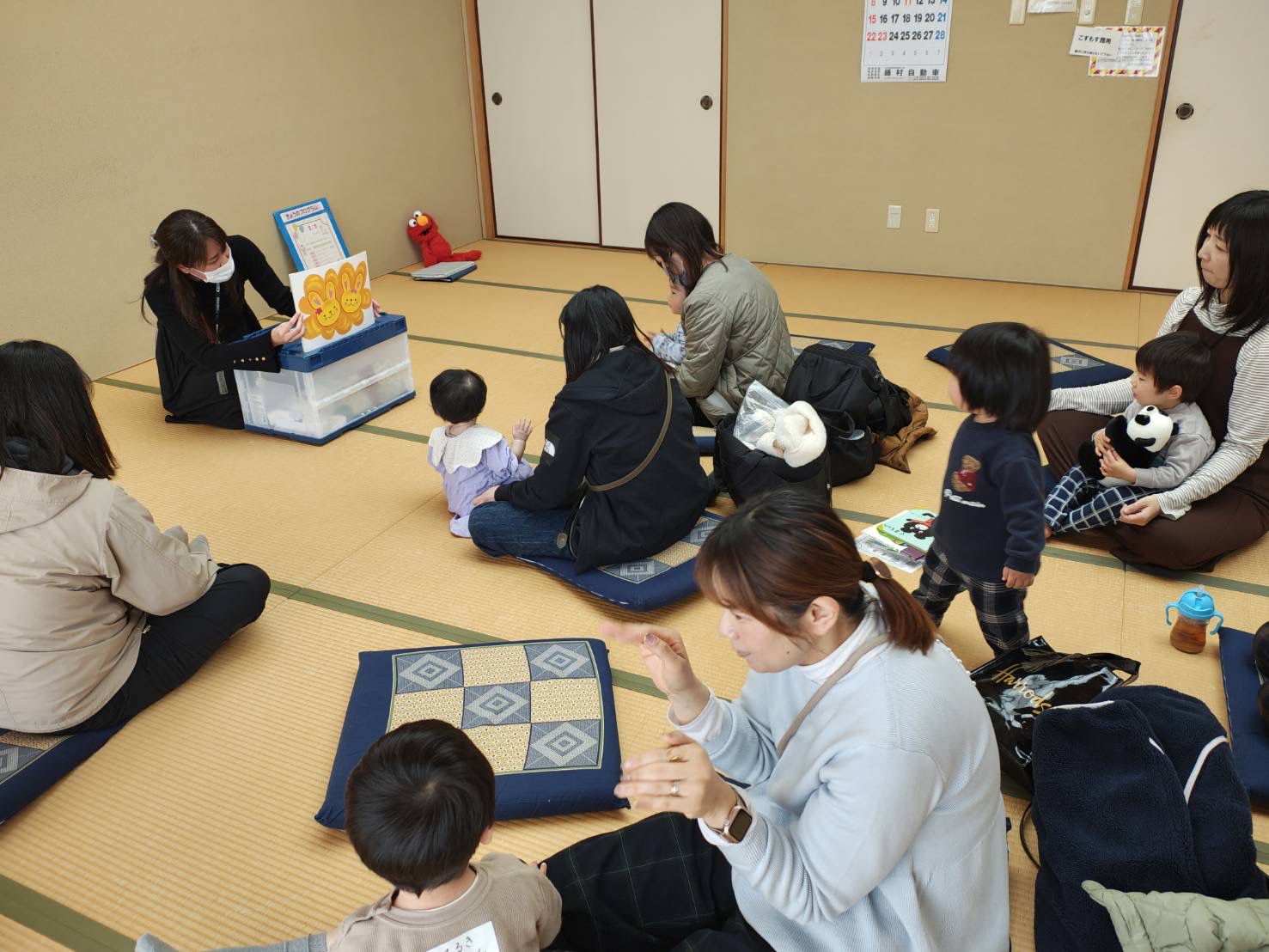 少し肌寒さを感じる中、11月のIPPOを開催しました。今回もたくさんの親子にご参加いただきました。感染症の影響などを心配していましたが、来てくれた子供たちの元気な姿に安心しました。はじめましての子もいましたが、どの子も楽しそうにおはなしを聞いてくれたり、お母さんと手あそびをしたり、お父さんの参加もあり、とても賑やかなおはなし会になりました。