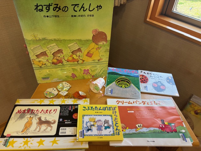 本日は春のおはな会でした。キャベツの中には♬の手あそびからスタートしました。いもむしやてんとうむしのえほん、アンパンマンやアイヌの物語の紙芝居もボランティアの緒方さんと上村さんが読んでくださいました。工作は緒方さんの紙コップクレーン作りを行いました。みんな上手にに手づくりのクレーンで景品をつりあげていました。帰りには上村さんのおりがみで作ったてんとうむしのプレゼントもあり、たくさんのおみやげを持ち帰るこどもたちの姿はとてもにこやかでした。