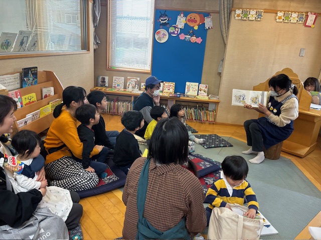 本日2月14日はバレンタインデーということで「バレンタインおはなし会」を開催しました。はじまりの歌から入り、やさしい気持ちになれるおはなしや、でんでらりゅうばのてあそびなど内容盛りだくさんでした。参加型のおはなしでは、みんな声を出しながら手を挙げてくれたり、てあそびも少し難しい動きも頑張ってやってみてくれていました。今回もにぎやかで楽しいおはなし会になりました。