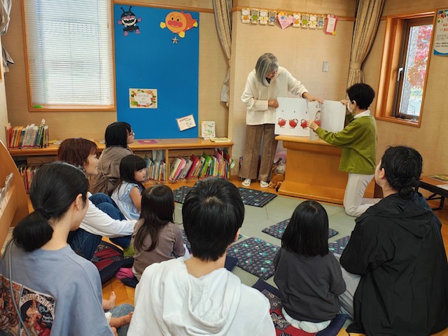 図書館では、ボランティアグループ陽だまりの会と図書館員によるおはなし会を行っています。