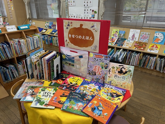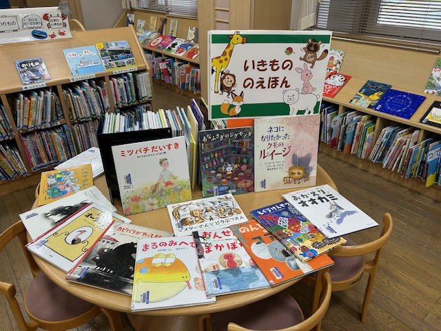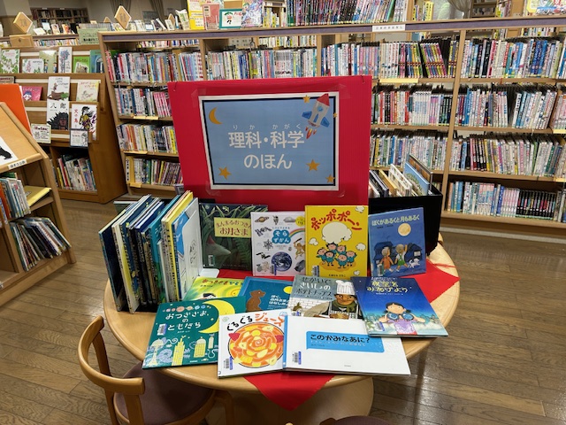 児童コーナーの円テーブルに、きせつのえほん、理科・科学のほん、いきもののえほんを特集しています。ぜひすてきなおはなしをみつけてください